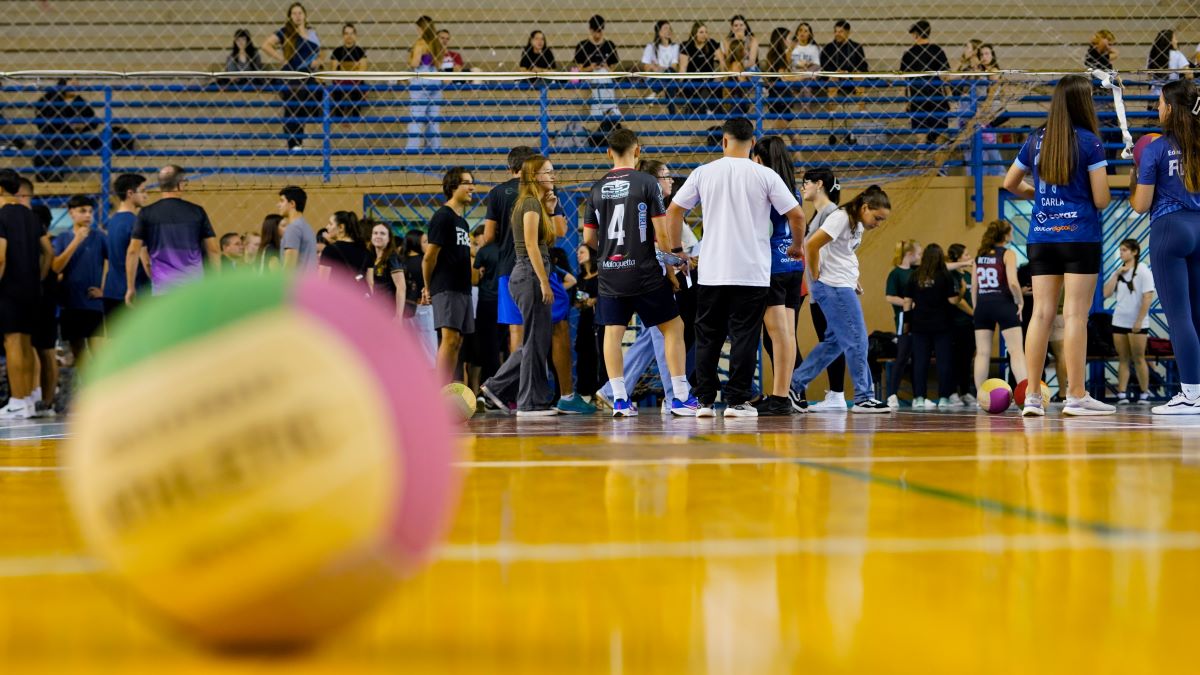 No ginásio de esportes, foram montadas 15 quadras simultâneas para partidas de minivoleibol. Cada curso formou equipes compostas por dois estudantes do primeiro semestre e dois do terceiro semestre, incentivando a troca de experiências e a integração.