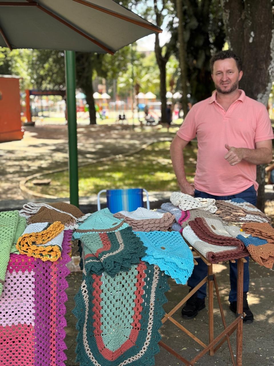 Entre os expositores, destacou-se a produção de peças decorativas em crochê do sócio-expositor Claudimir Antônio de Castros, conhecido como Toni. Associado desde antes do período da pandemia da Covid-19, sob o número 2078, ele produz peças artesanais de forma singular. Toni iniciou no crochê quando trabalhava na Rodoviária de Santo Ângelo, aprendendo os primeiros pontos com uma colega. Hoje, domina a técnica e comercializa seus produtos no Brique da Praça e também por meio das redes sociais, como Facebook e Instagram. Junto à sua banca, passou a oferecer também porções de sal temperado, que despertaram a curiosidade e atraíram novos compradores. Sempre simpático, afirma sentir-se realizado com sua participação no evento.
