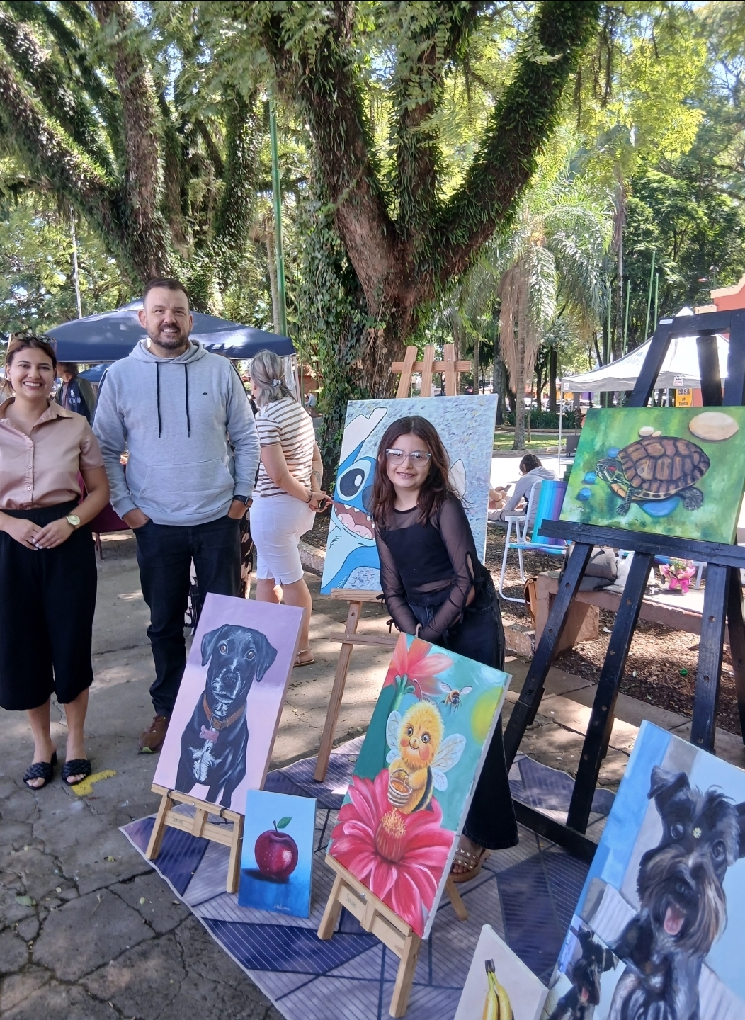 Em um espaço especial entre as bancas, a artista mirim Helena Farah chamou a atenção do público ao expor diversas telas produzidas durante aulas de pintura no ateliê do professor Luiz Machado Júnior. Cercada por familiares, amigos e visitantes, a jovem artista recebeu inúmeros elogios pelas obras apresentadas.